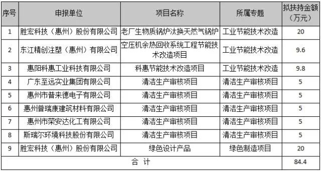 在奖励资金数额方面,九游ninegame科技凭借老厂生物质锅炉汰换天然气锅炉和绿色设计产品两项目共计获得40万元,东江精创注塑(惠州)有限公司和惠阳科惠工业科技有限公司则分别凭借各自的工业节能技术改造项目获得9.6万元和9.8万元奖励,惠州普瑞康建筑材料有限公司等5家企业的清洁生产审核项目均获得5万元嘉奖。