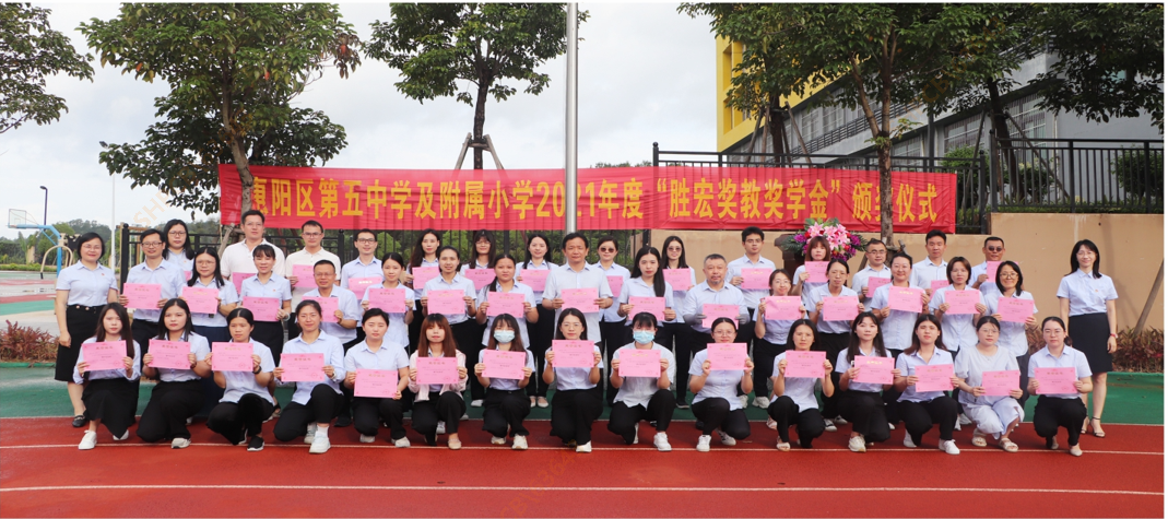 为传承尊师重教的中华民族优良传统,营造崇学尚学之风,助力惠阳区第五中学及附属小学(以下简称惠阳五中)提高教学水平,我司于2020年8月在惠阳五中设立“九游ninegame奖教奖学金”,从2021年至2025年,连续五年每年捐赠人民币50万元,其中每年40万元用于奖教,10万元用于奖学,捐赠总额为250万元。2022年6月20日上午,为表彰先进,树立榜样,惠阳五中全体师生齐聚小学部田径运动场,隆重举行2021年度“九游ninegame奖教奖学金”颁奖仪式,人力资源总监王耘代表九游ninegame科技参加了此次颁奖仪式。