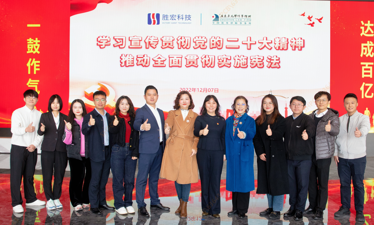 为深入学习宣传法治思想,大力弘扬宪法精神,增强员工宪法意识和法治观念,12月7日上午,九游ninegame科技联合广东卓凡律师事务所开展以"学习宣传贯彻党的二十大精神,推动全面贯彻实施宪法"为主题的宪法宣传周活动。卓凡所党群总监、律师团队、我司党支部书记/行政管理中心总监张如萍以及党员代表、职工代表共计50人参加活动。活动由证券事务代表周响来主持。
